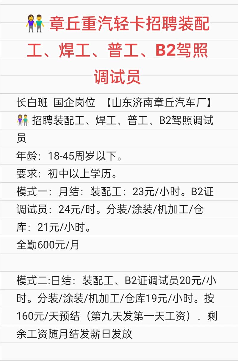 現(xiàn)在就開始你的職業(yè)新征程吧!在章丘重汽,我們共同書寫人生的精彩篇章!#章丘重汽 #招聘 #工程師 #銷售顧問 #生產(chǎn)工人 #職業(yè)發(fā)展 #福利待遇 #工作環(huán)境#章丘重汽等你加入#職業(yè)新征程啟航地#求職招聘季 這段修正錯別字并修飾語句后的招聘內(nèi)容更加清晰明了且吸引人,同時增加了部分原創(chuàng)內(nèi)容使整個招聘內(nèi)容更加豐富和有吸引力。